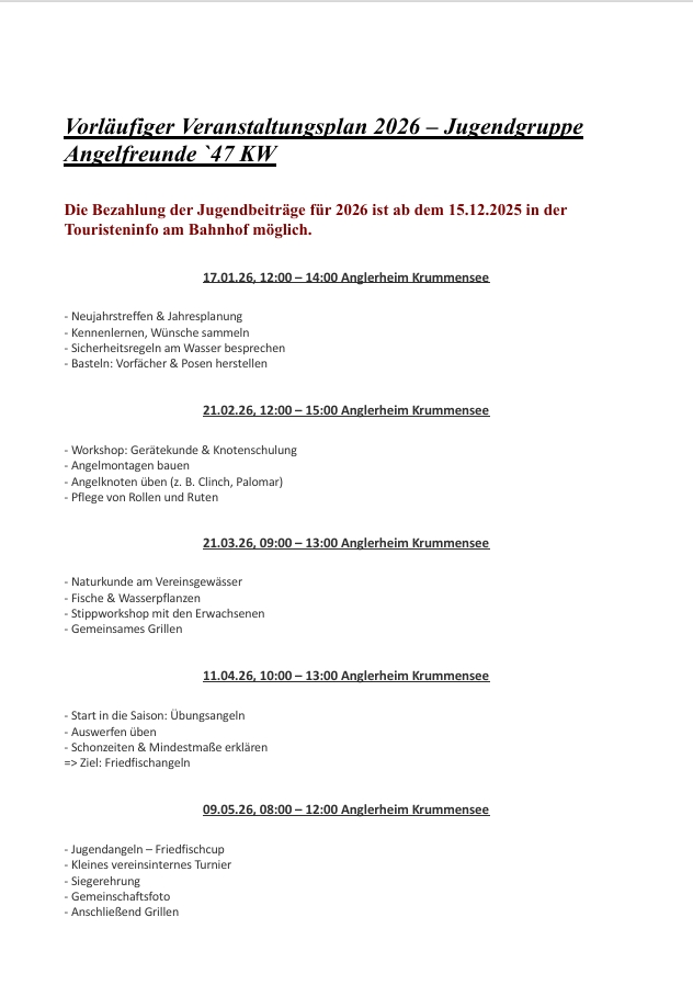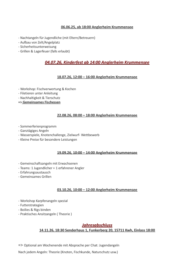 Bei uns gibt es keine Pflichtveranstaltungen oder Arbeitsstunden. Alles basiert auf freiwilligem Engagement – so bleibt die Freude am Angeln immer im Vordergrund.