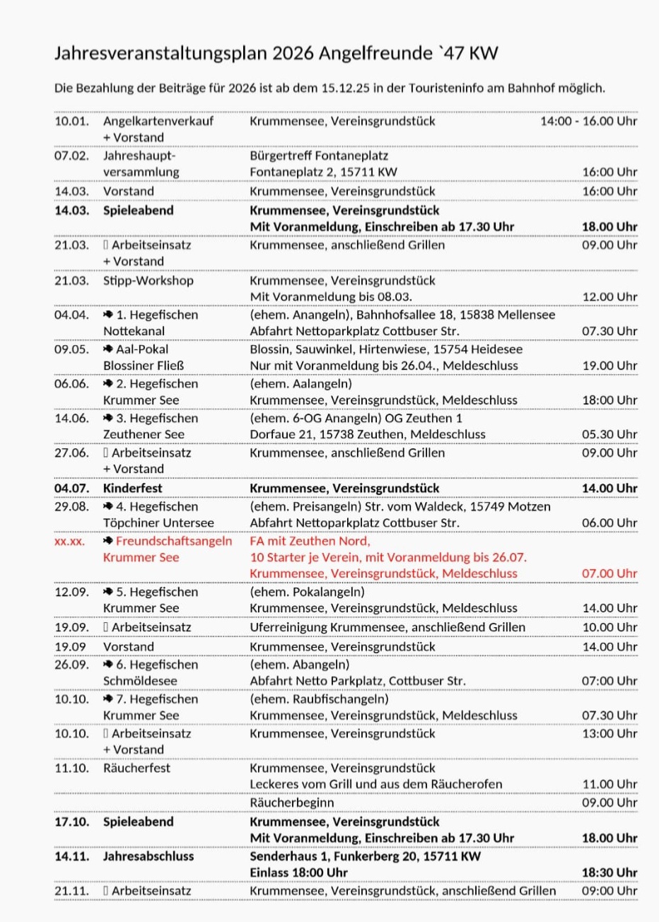 Wir sind die Angelfreunde ’47! Schön, dass Du den Weg zu uns gefunden hast. Hier erfährst Du mehr über uns und unseren Angelverein. Stöbere gern durch unsere Seite, um einen Eindruck von unserer Gemeinschaft zu bekommen. Bei Fragen stehen wir Dir jederzeit zur Verfügung – sprich uns einfach an!